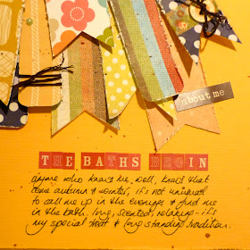 Oh I used to love baths too - maybe I need to rekindle that habit as well. I immediately thought of those banners as hanging towels - so I'd say your page set the mood. Well done.